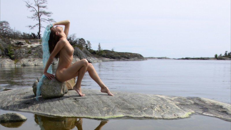 Голышом в озере Карелия