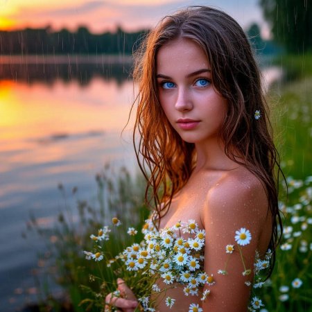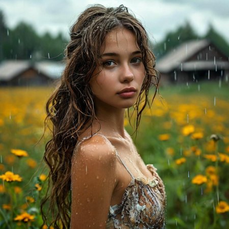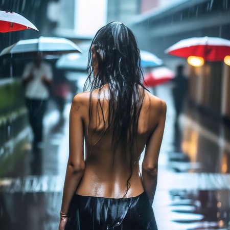 Голые девочки под дождем