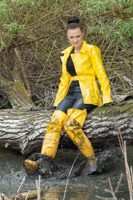 Фото: Девушки в резиновых сапогах в грязи