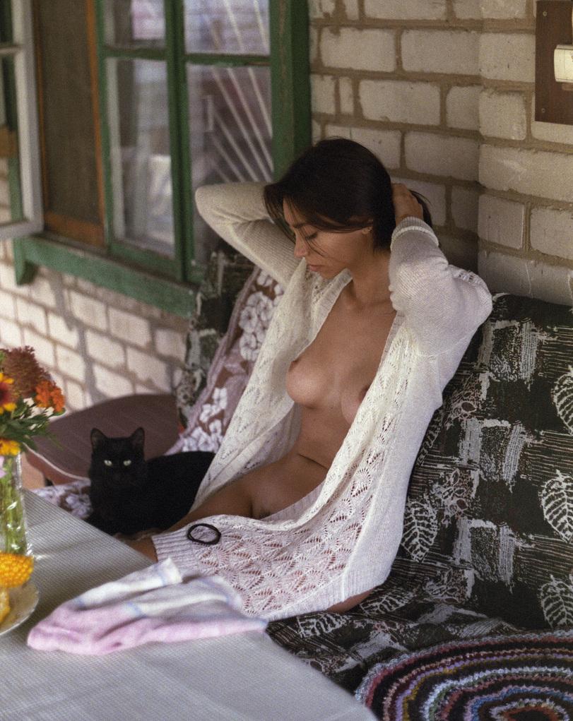 Фото: Красивая девушка свитер ню