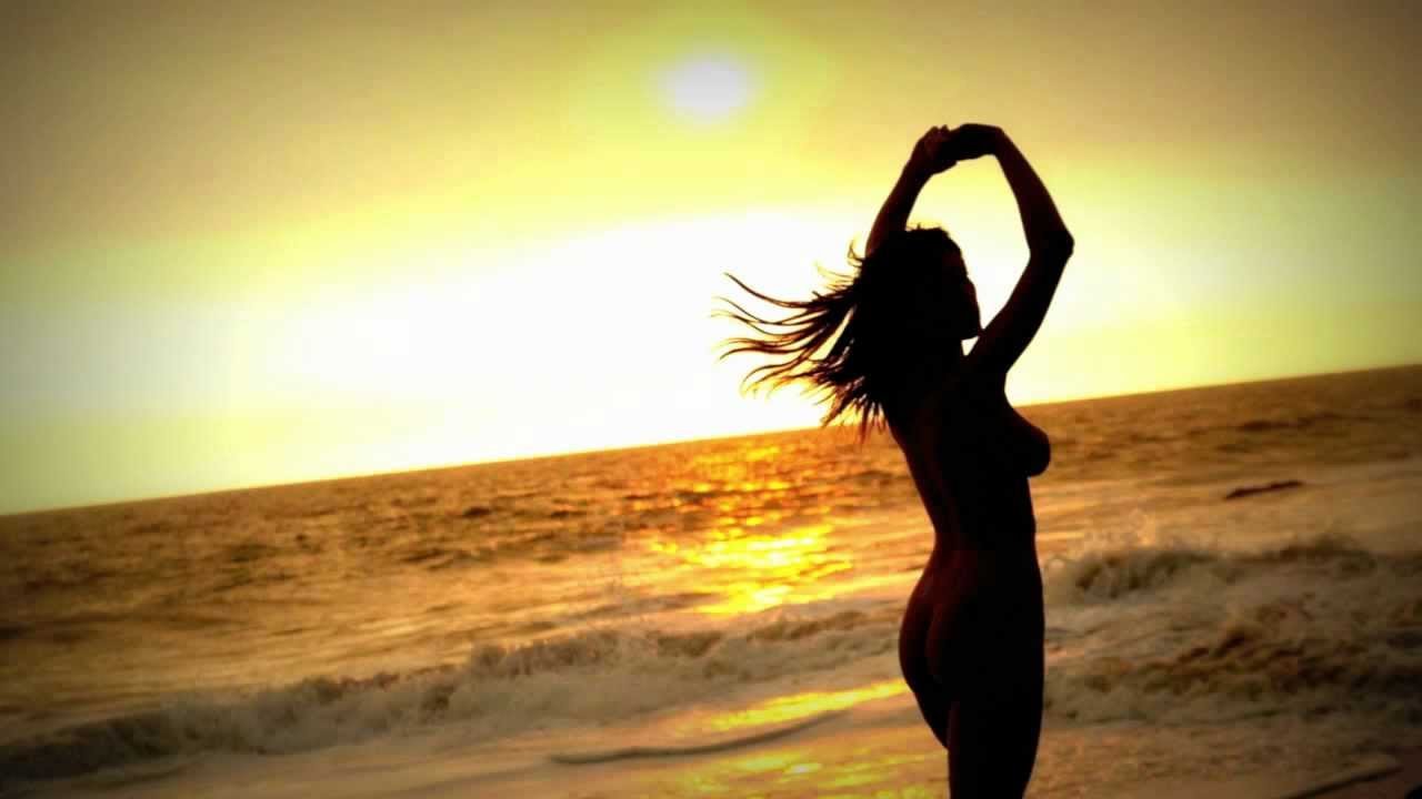 Голенькие девчонки на пляже на закате