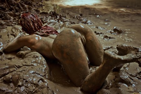 Девушка с большими сиськами в грязи