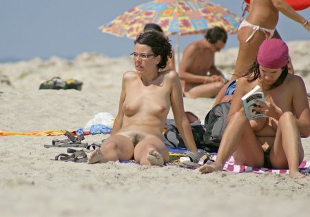Красивые голые женщины на общественном пляже