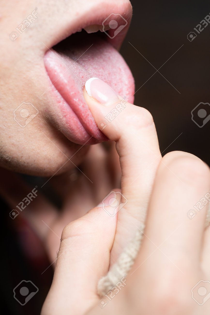 Мужской палец во рту девушки