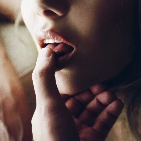 Мужские пальцы во рту у женщины