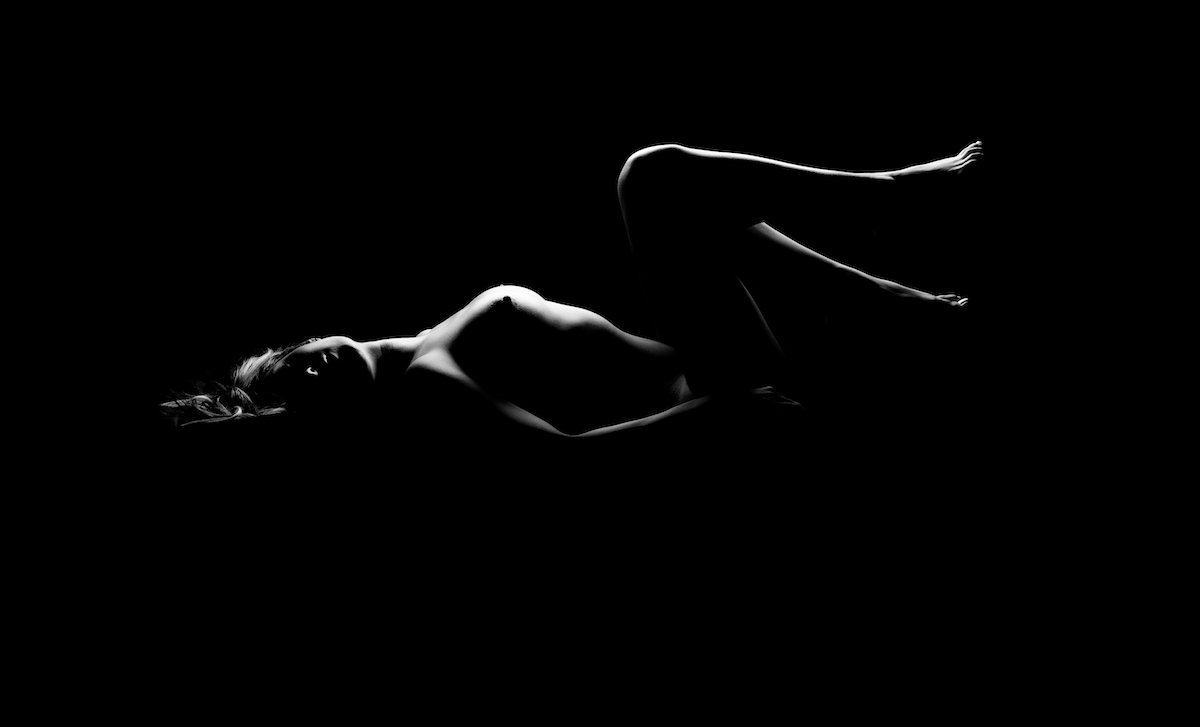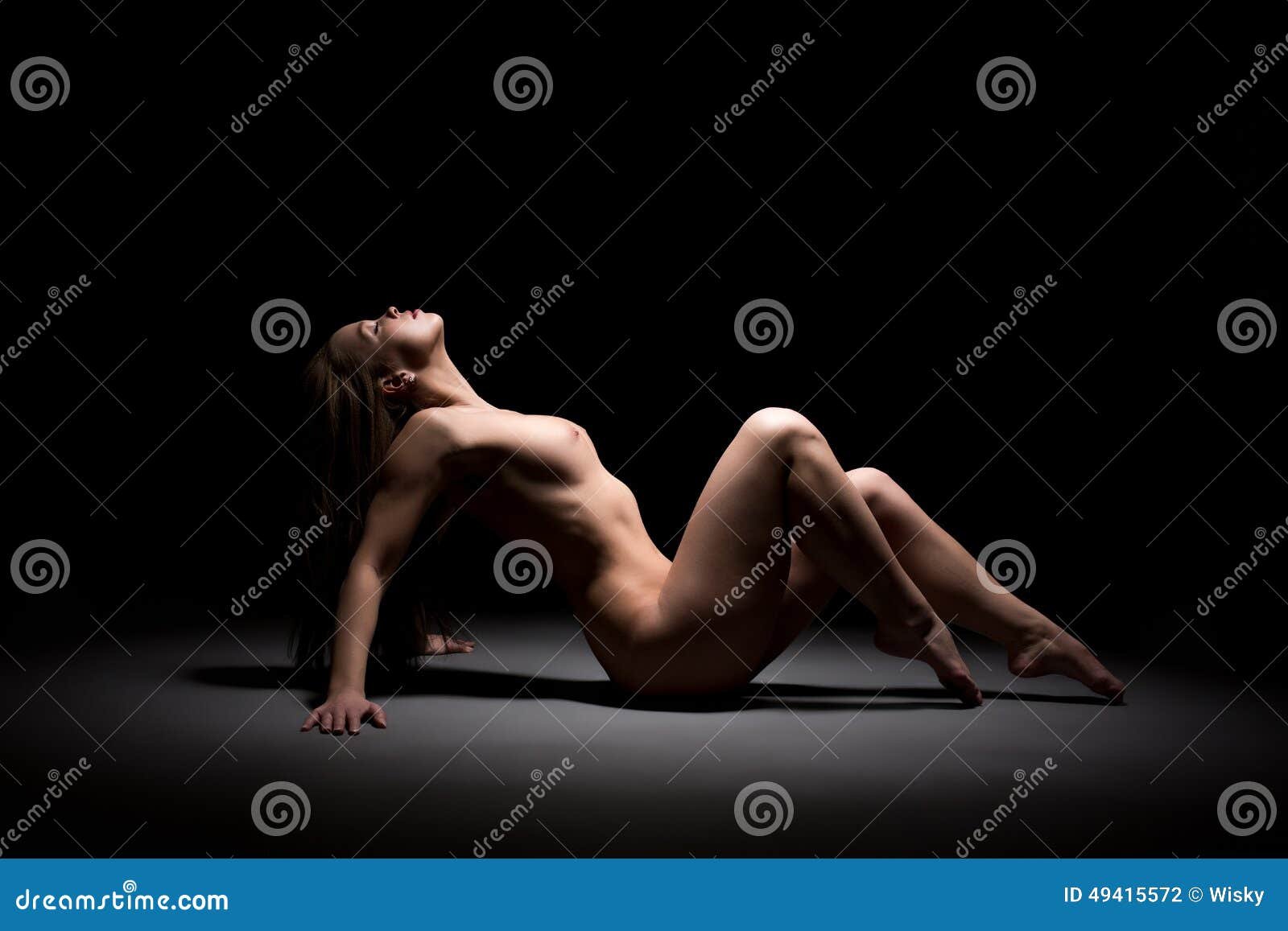 Голая на черном фоне