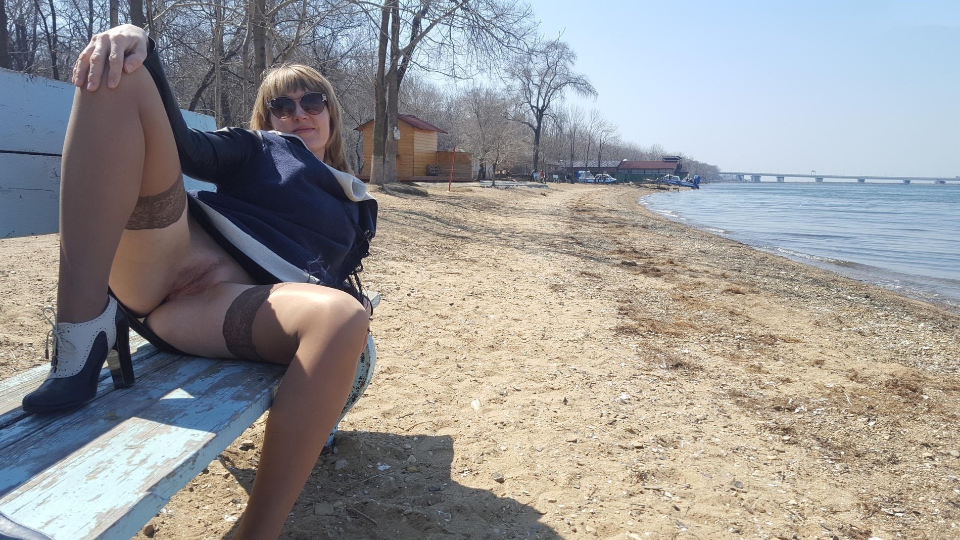Зрелые в чулках на улице без трусов