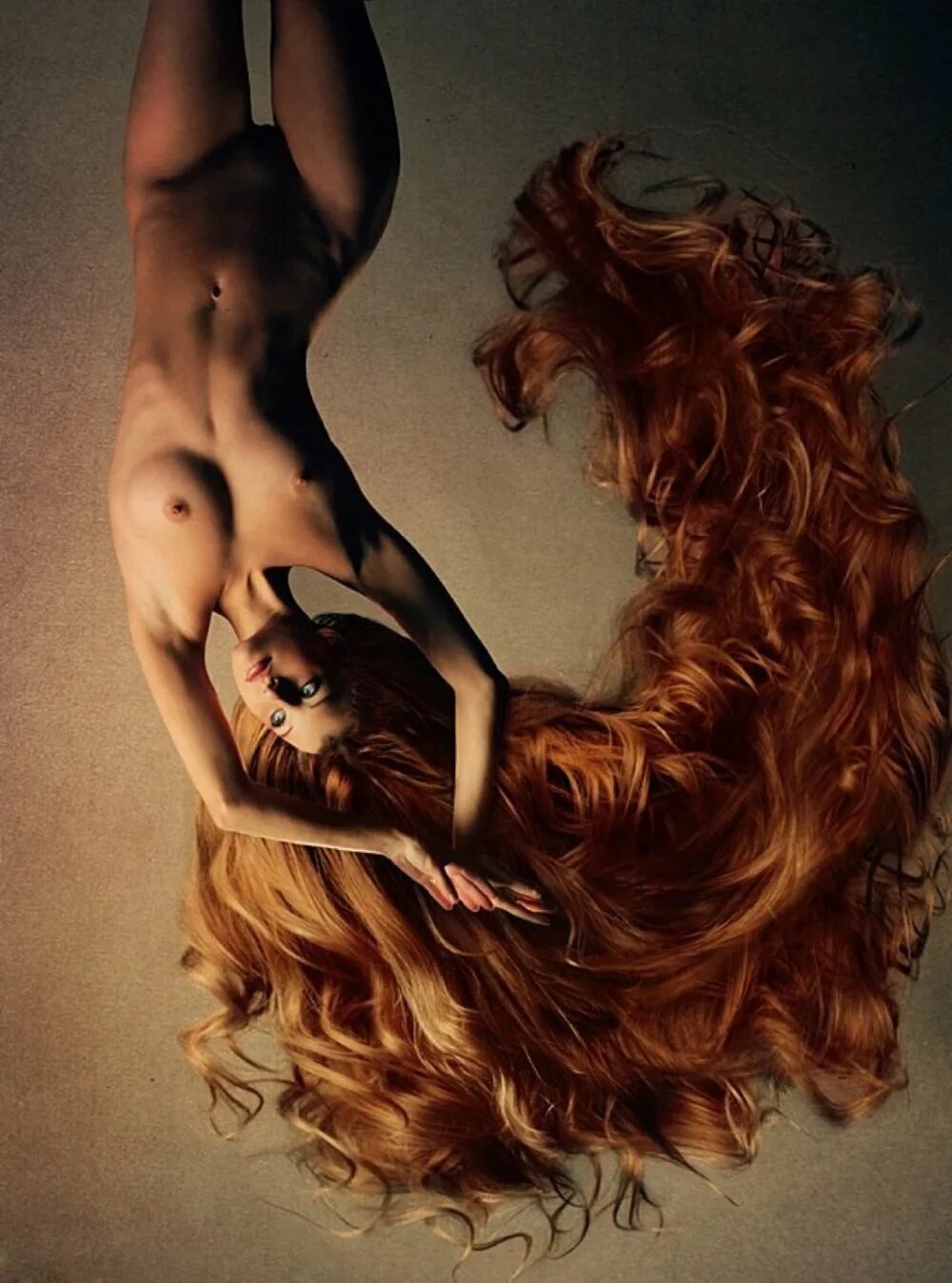 Голая рыжая с длинными волосами