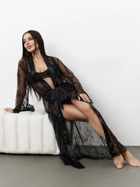 Robe lingerie Eye. Кружевной халат кимоно