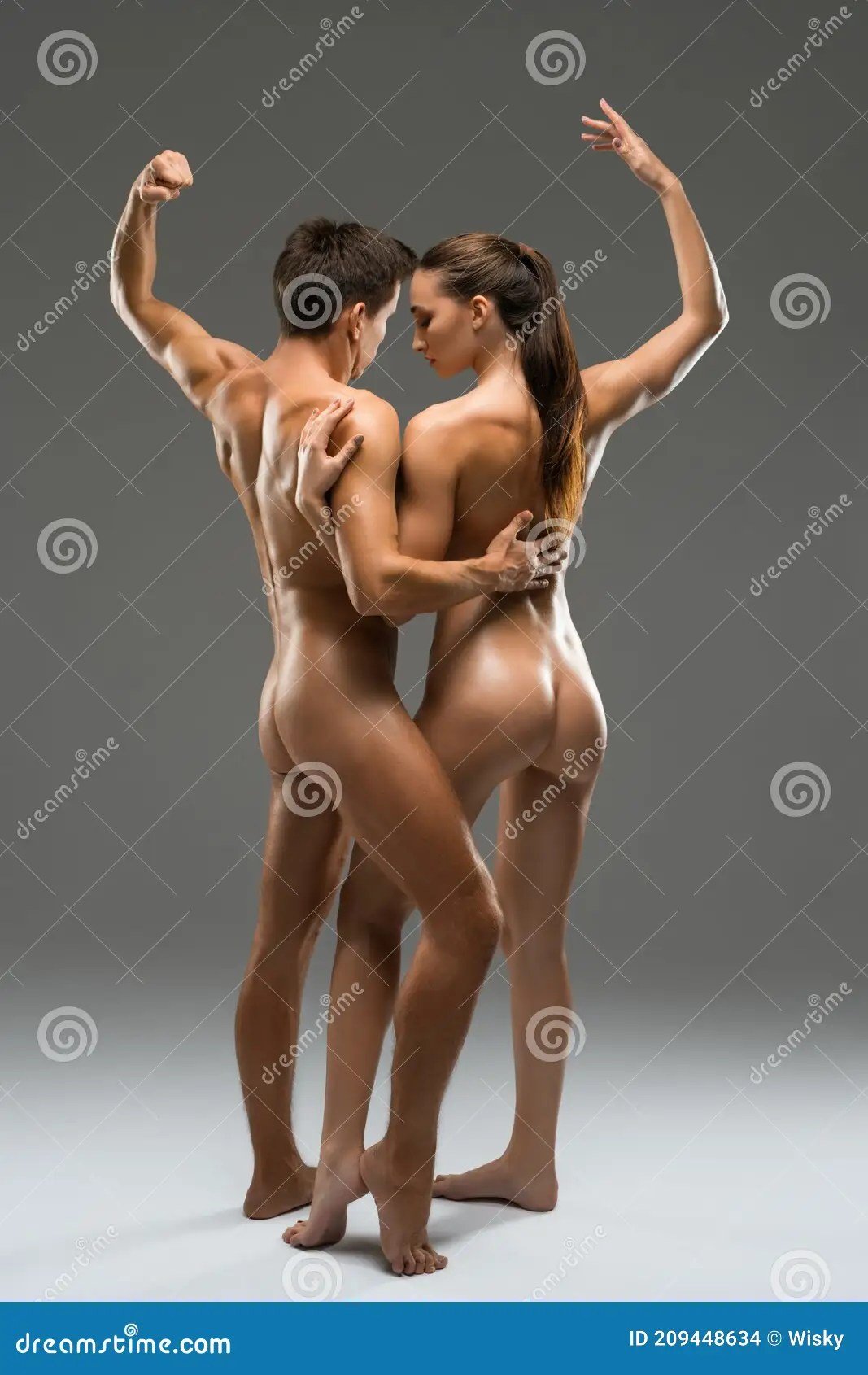 Голые.пары позируют в студии