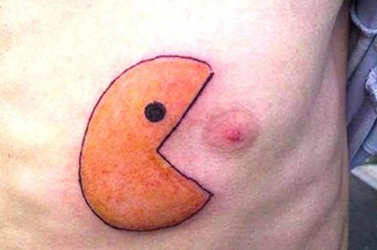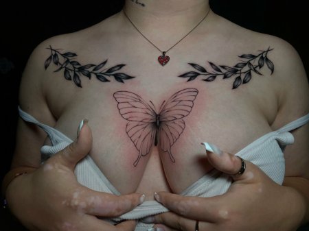 Татуировки под голыми сиськами