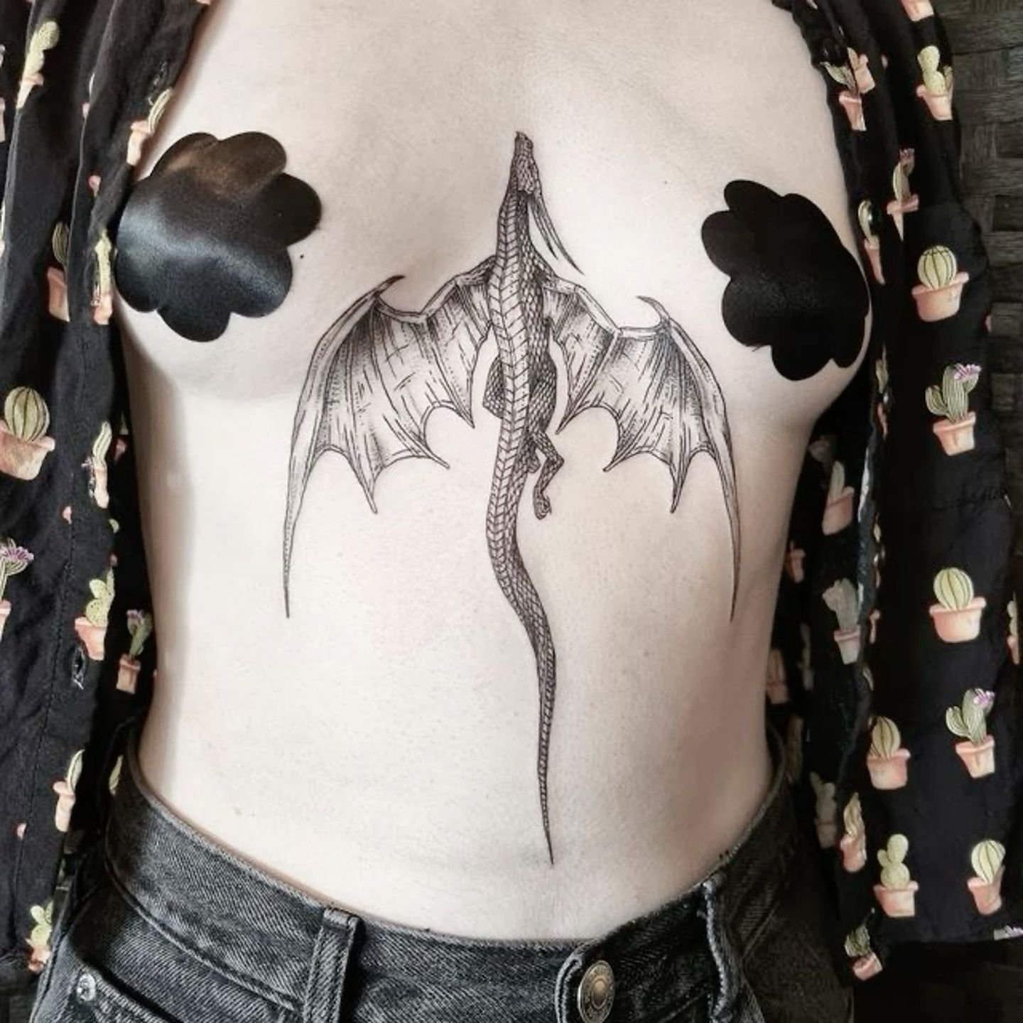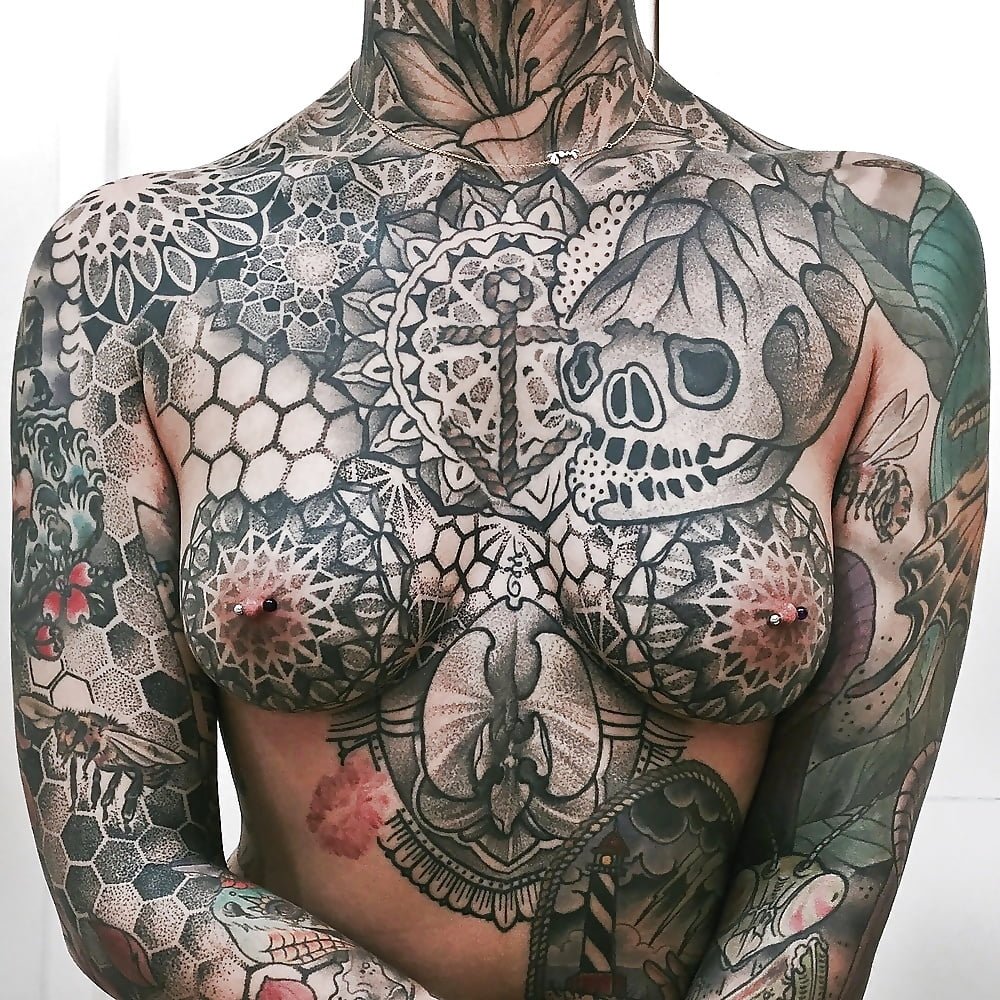 Полностью татуированная женская грудь