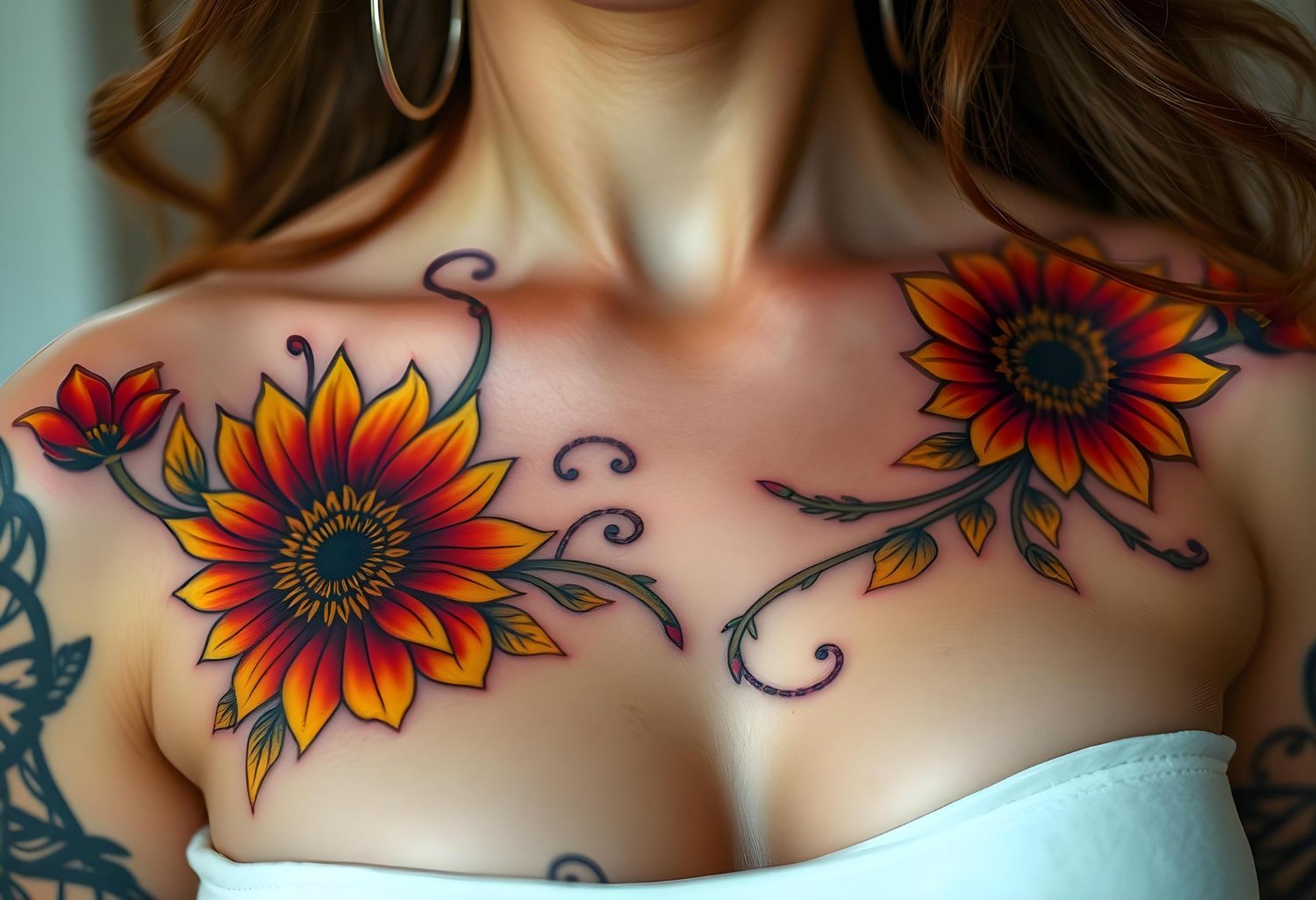Тату на груди цветные