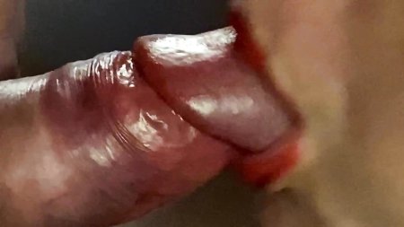 Red Lips playing with cum pulsating blowjob