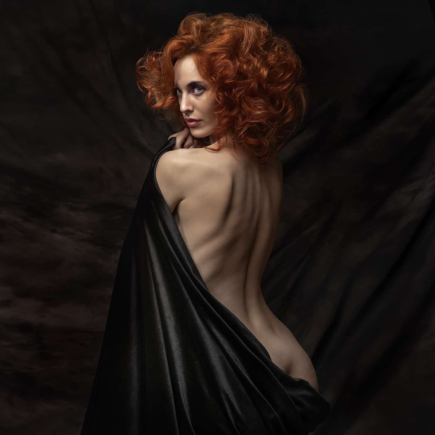 Рыжая девушка в черном бархатном платье