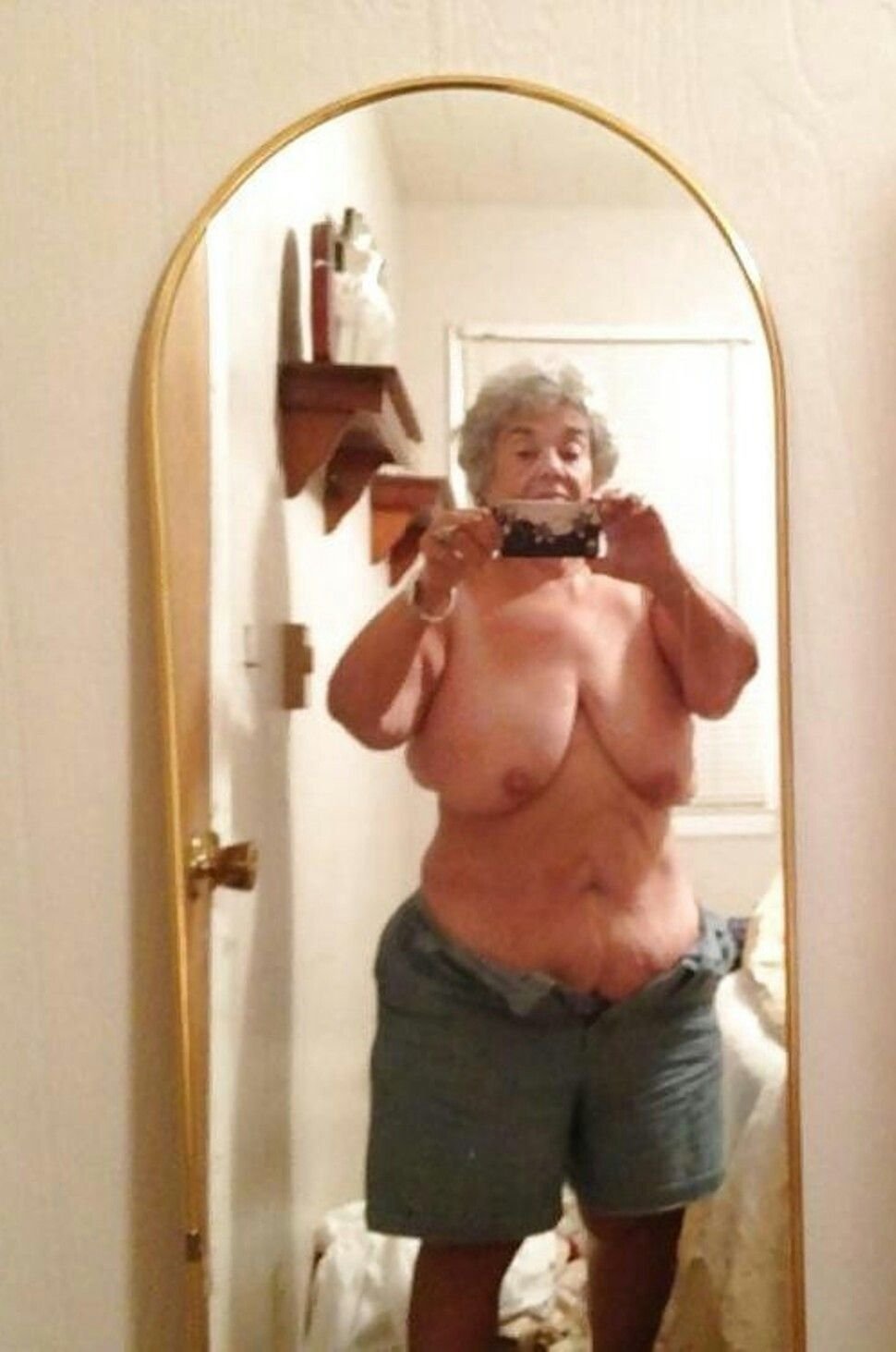 Пожилая бабка селфи ню